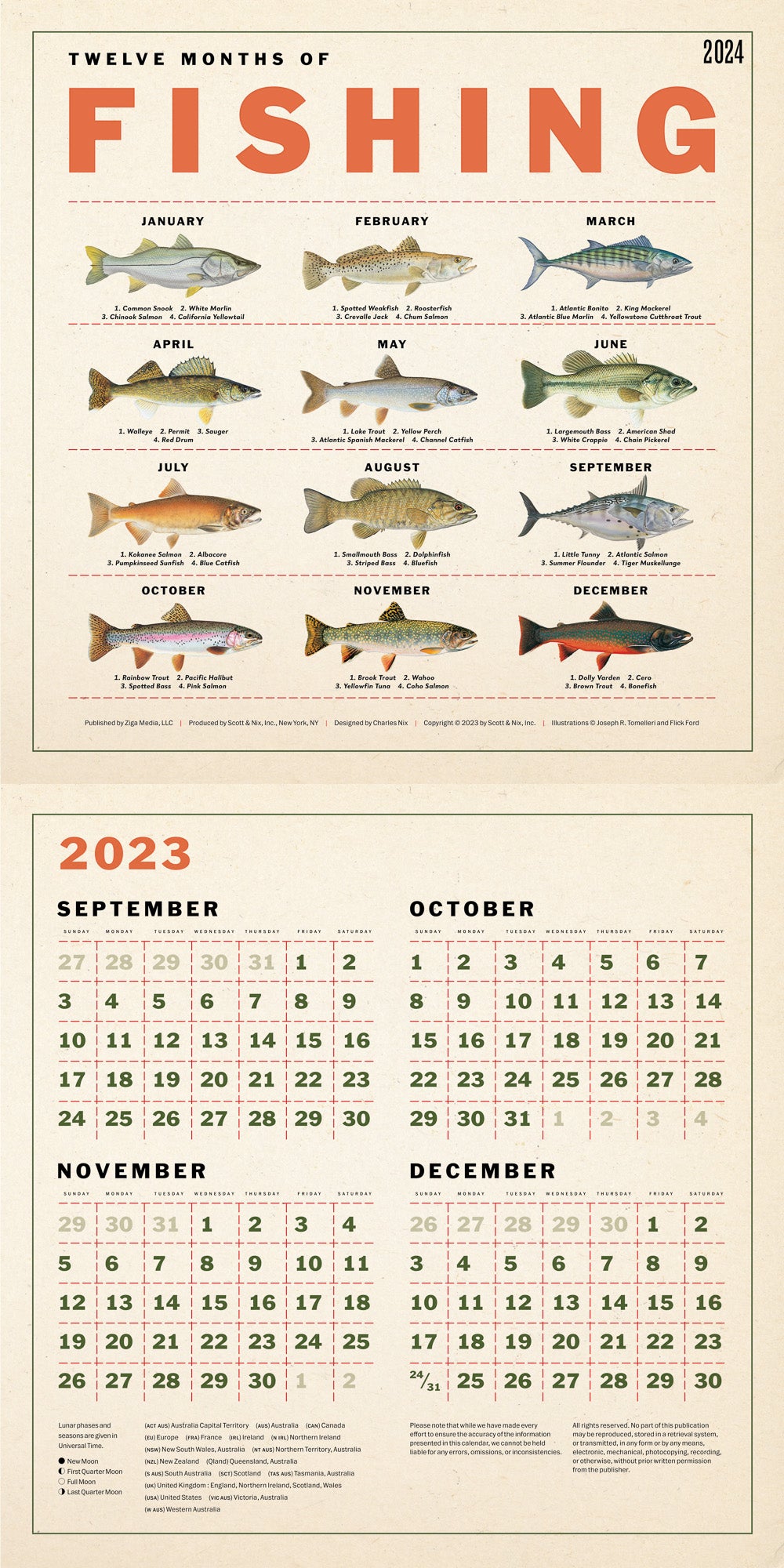 Twelve Months of Fishing Wall Calendar 2025, Monthly January